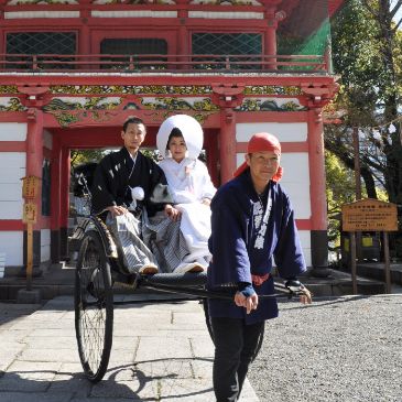 北岡神社からホテルへの人力車の手配もございます。