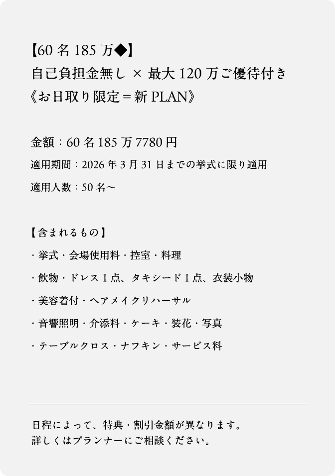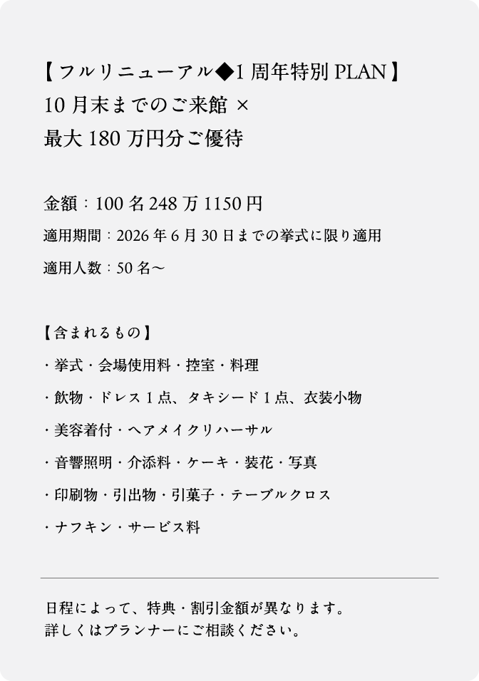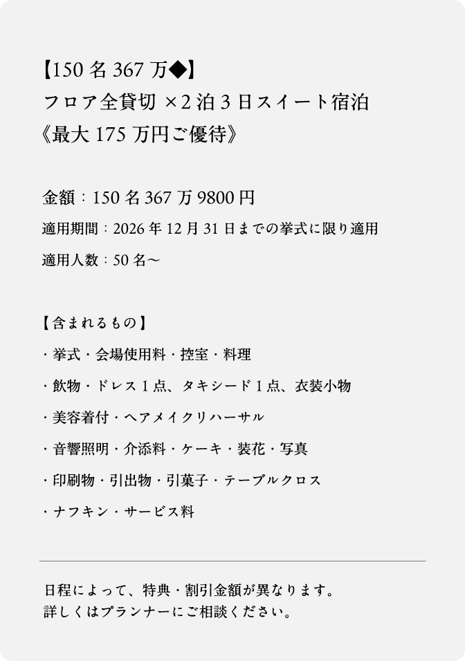 相談予約フォーム 必須相談場所 オンラインご来館 必須ご希望日 営業時間/平日 12:00~18:30 土日祝 10:00~19:00 定休日/火・水曜日(祝日除く) 必須おなまえ 必須メールアドレス 迷惑メール防止のためドメイン指定受信されている方は指定ドメインに「@onestationhotel-wedding.jp」「@dlight.jp」を追加してください 必須電話番号 ご質問・ご要望など(任意) ご入力内容に間違いがなければチェックを入れ送信ボタンを押してください。
