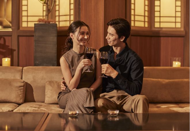 静かに流れる音と光に包まれながら、未来への期待を語り合う——。